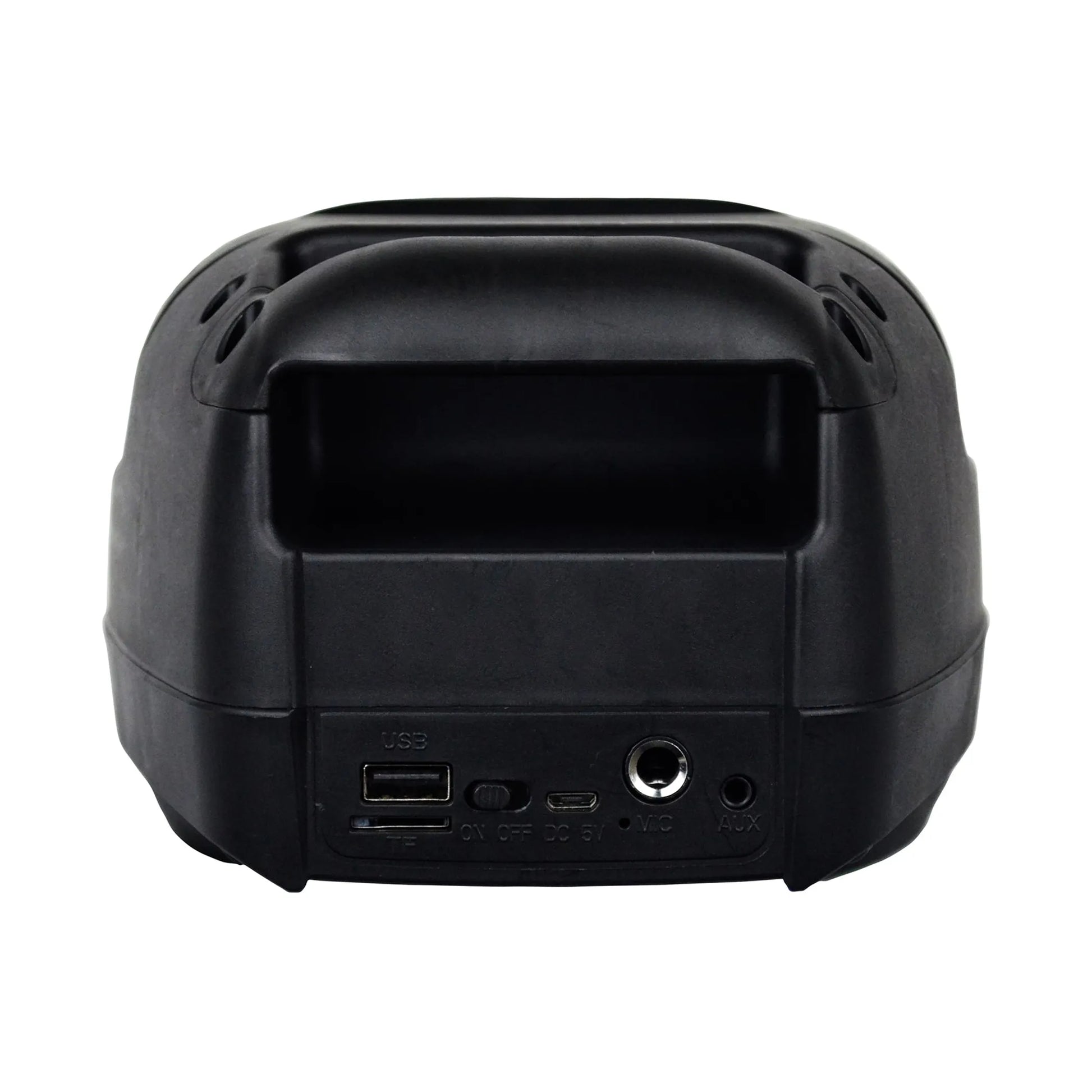 Features and Specifications:4" High-Efficiency SpeakerBuilt-in Bluetooth(R) 5.0 Compatible Allows Your Speaker to Work with Bluetooth(R) Enabled DevicesTrue Wireless Stereo (TWS): Allows You to Connect 2 Speakers Via Bluetooth(R) with TWS Technology So they Can Play at the Same Time and You Can Double Your Audio OutputColorful LED Lights ShowMulti Connectivities: USB, Micro SD & AUX Inputs Allow You to Connect Your Non-Bluetooth(R)External Audio DevicesRechargeable Batteries (3.7V/1200Mah)FM Radio1 Mic InputDC In Power: 5V 1ASystem Type: 4" WoofersFrequency Response: 90Hz-20KHzS/N Ration: 60dBImpedance: 3 OhmRMS: 5W Lithium IonAccessories Included: ManualDimensions & Weight:Unit Dimensions (in): 6.38 x 4.57 x 7.8Unit Weight (lbs): 1.1Gift Box Dimensions (in): 6.38 x 4.57 x 7.8Gift Box Weight (lbs): 1.22UPC: 639131218048