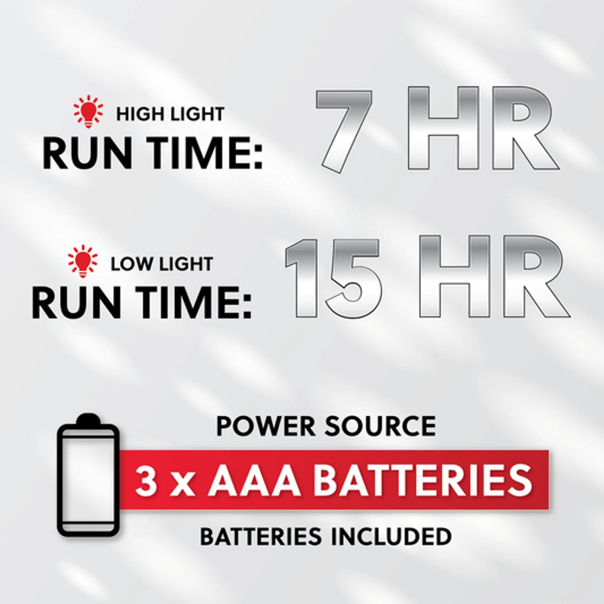 Operating Time: High 7 Hours, Low 15 Hours
