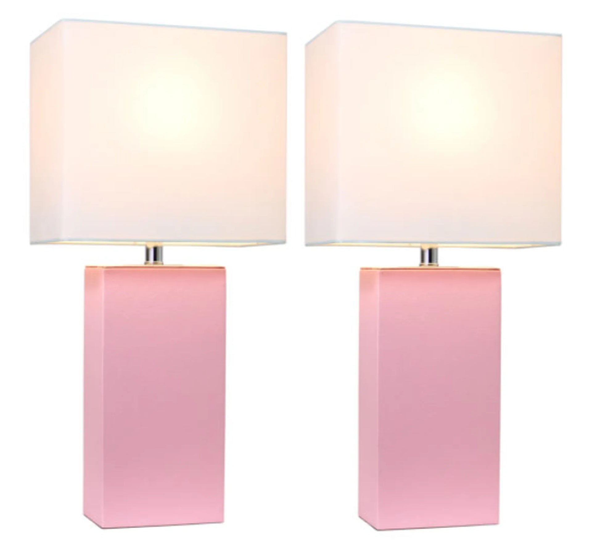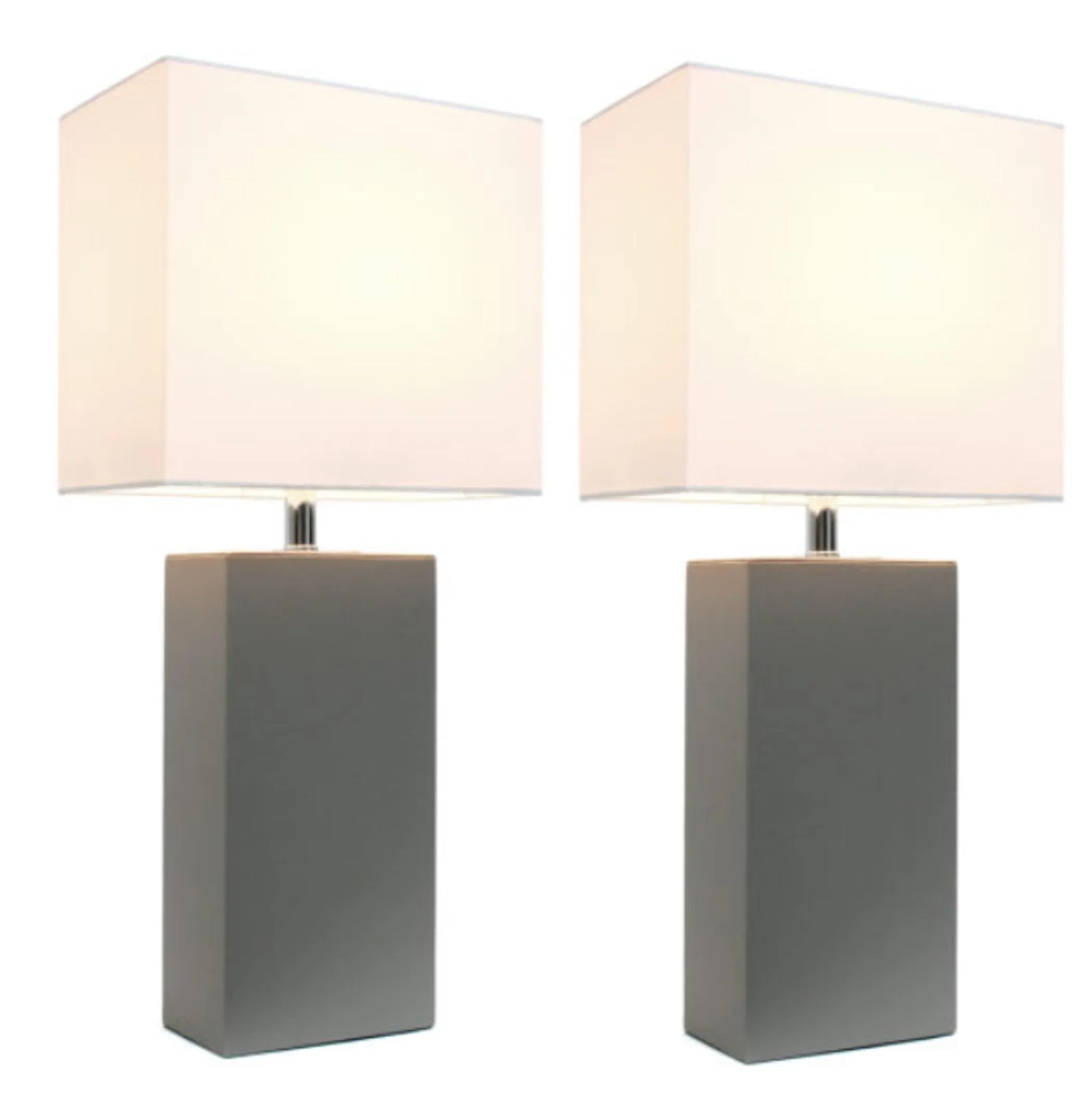 Elegant Designs Modern Leather Table Lamps with White Fabric Shades (Set of 2)