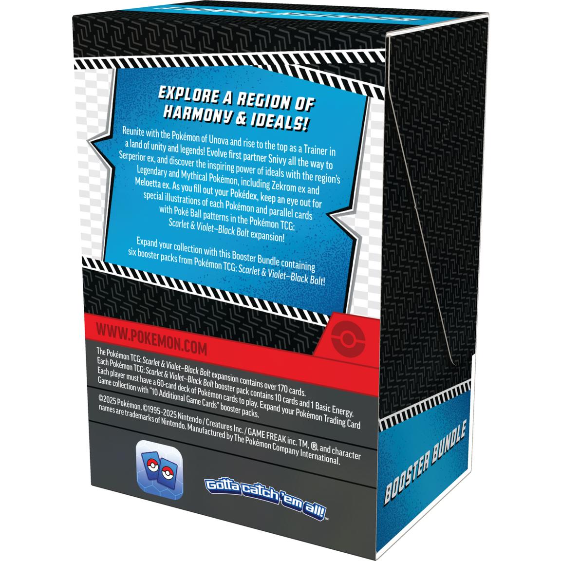 Reunite with the Pokémon of Unova and rise to the top as a Trainer in a land of unity and legends! Evolve first partner Snivy all the way to Serperior ex, and discover the inspiring power of ideals with the region’s Legendary and Mythical Pokémon, including Zekrom ex and Meloetta ex. As you fill out your Pokédex, keep an eye out for special illustrations of each Pokémon and parallel cards with Poké Ball patterns in the Pokémon TCG: Scarlet & Violet—Black Bolt expansion!