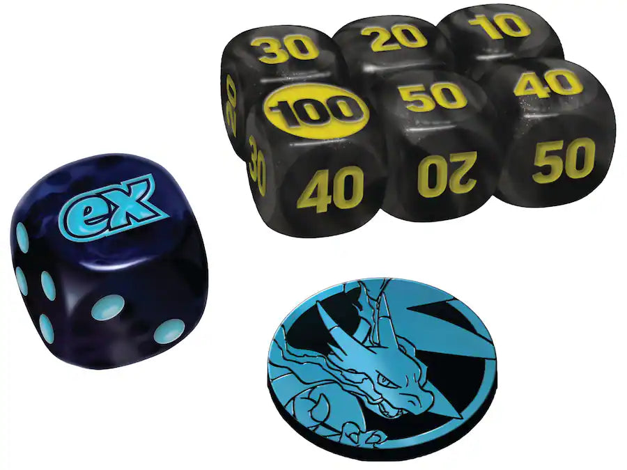 Searing blue flames rip across a dark battlefield as Mega Charizard X ex soars up and looks down upon its opponents! With a deep chill to
