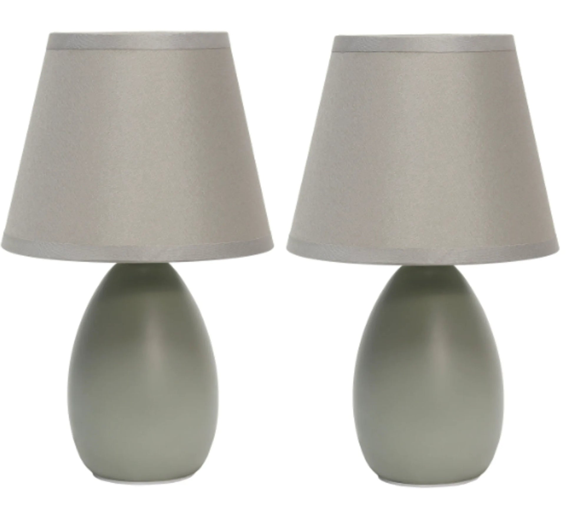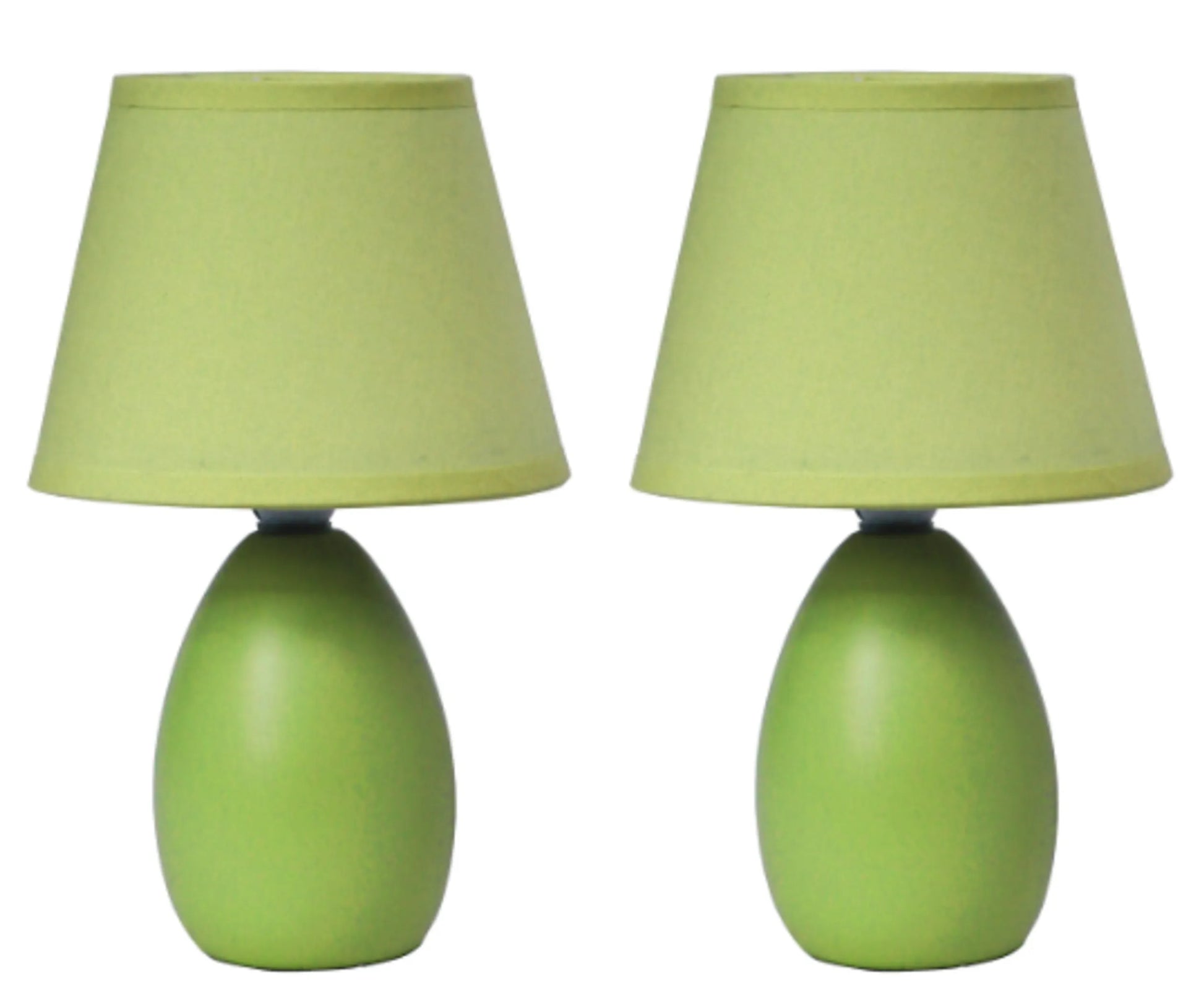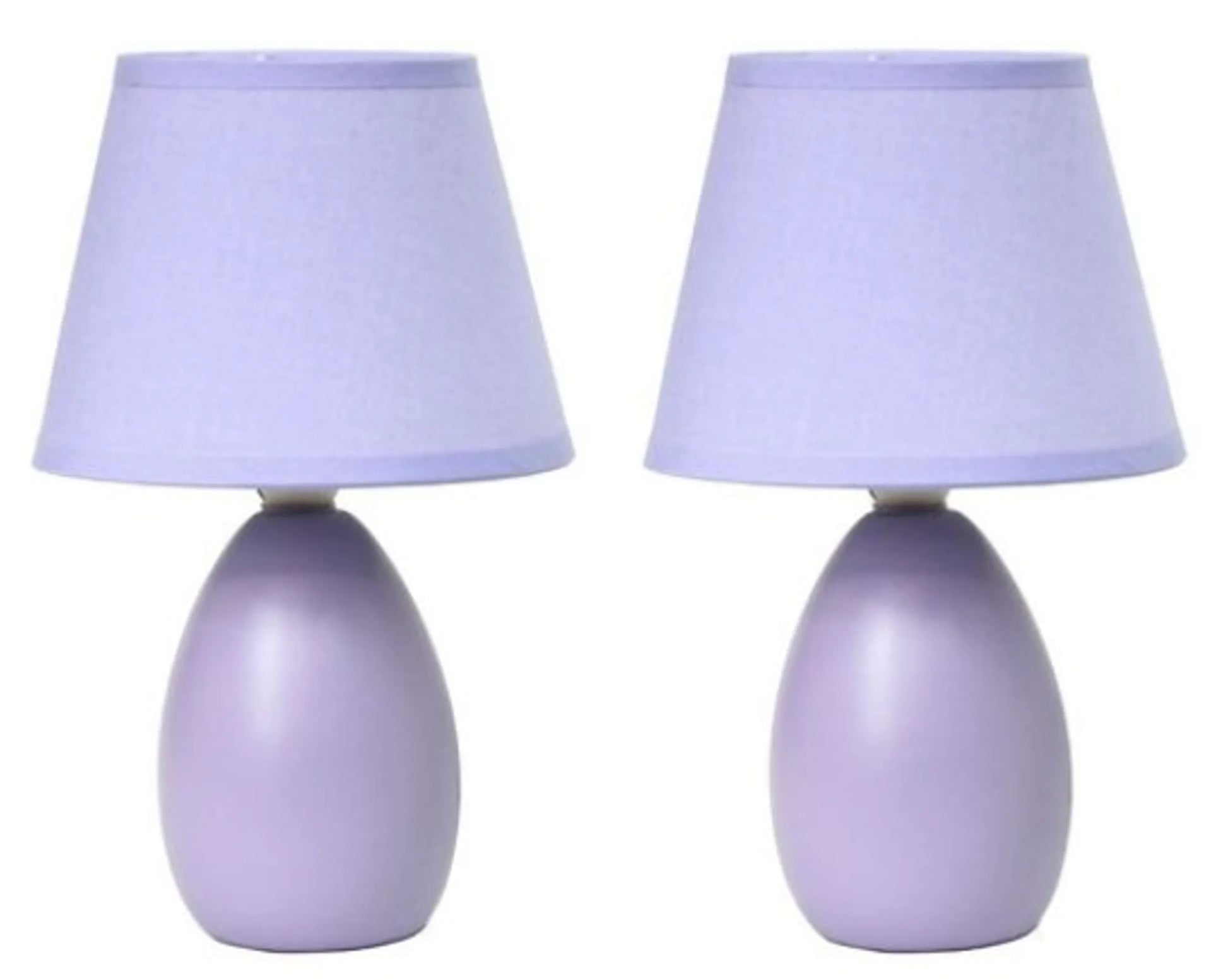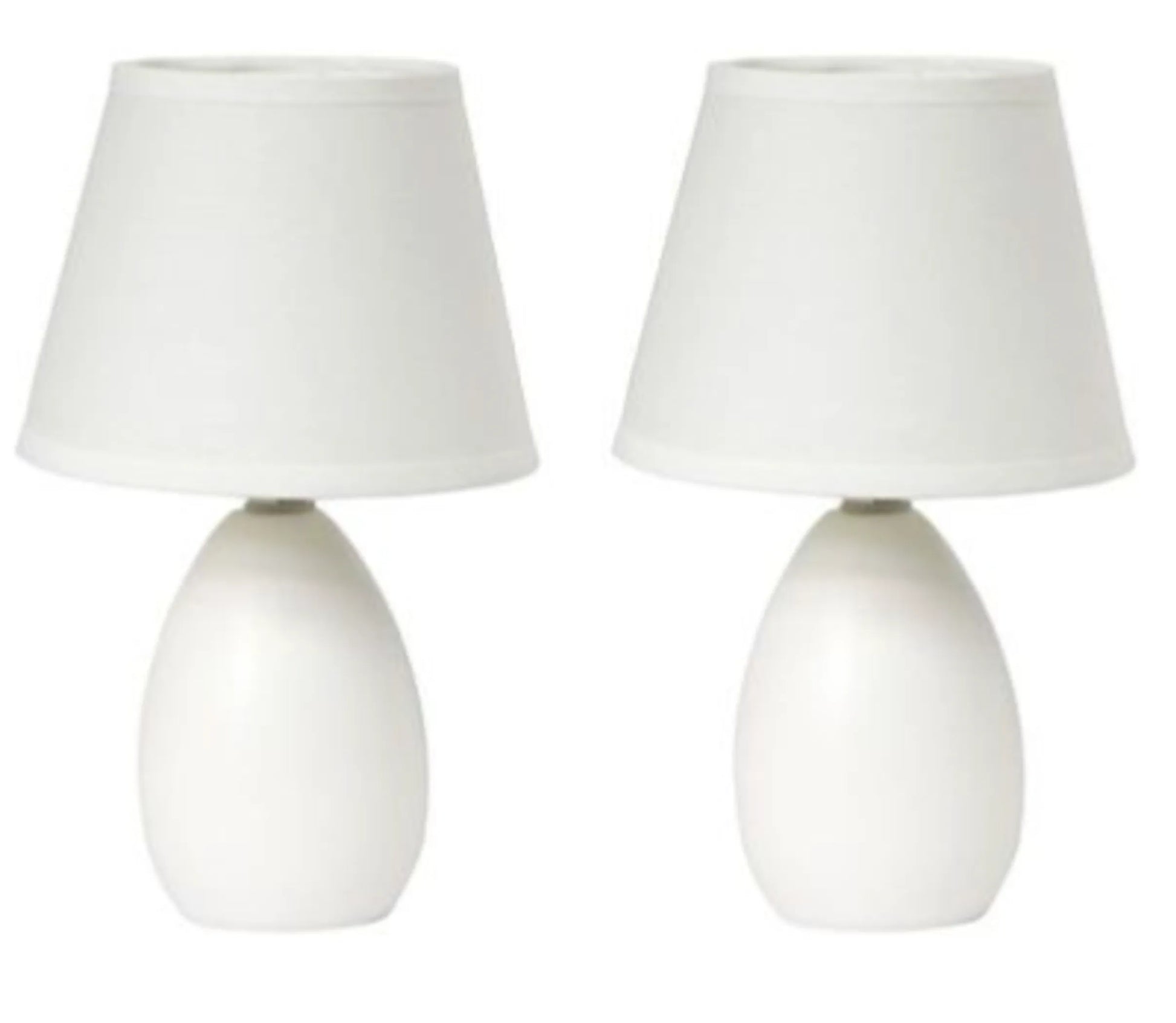 Simple Designs Mini Egg Oval Ceramic Table Lamp 2 Pack Set