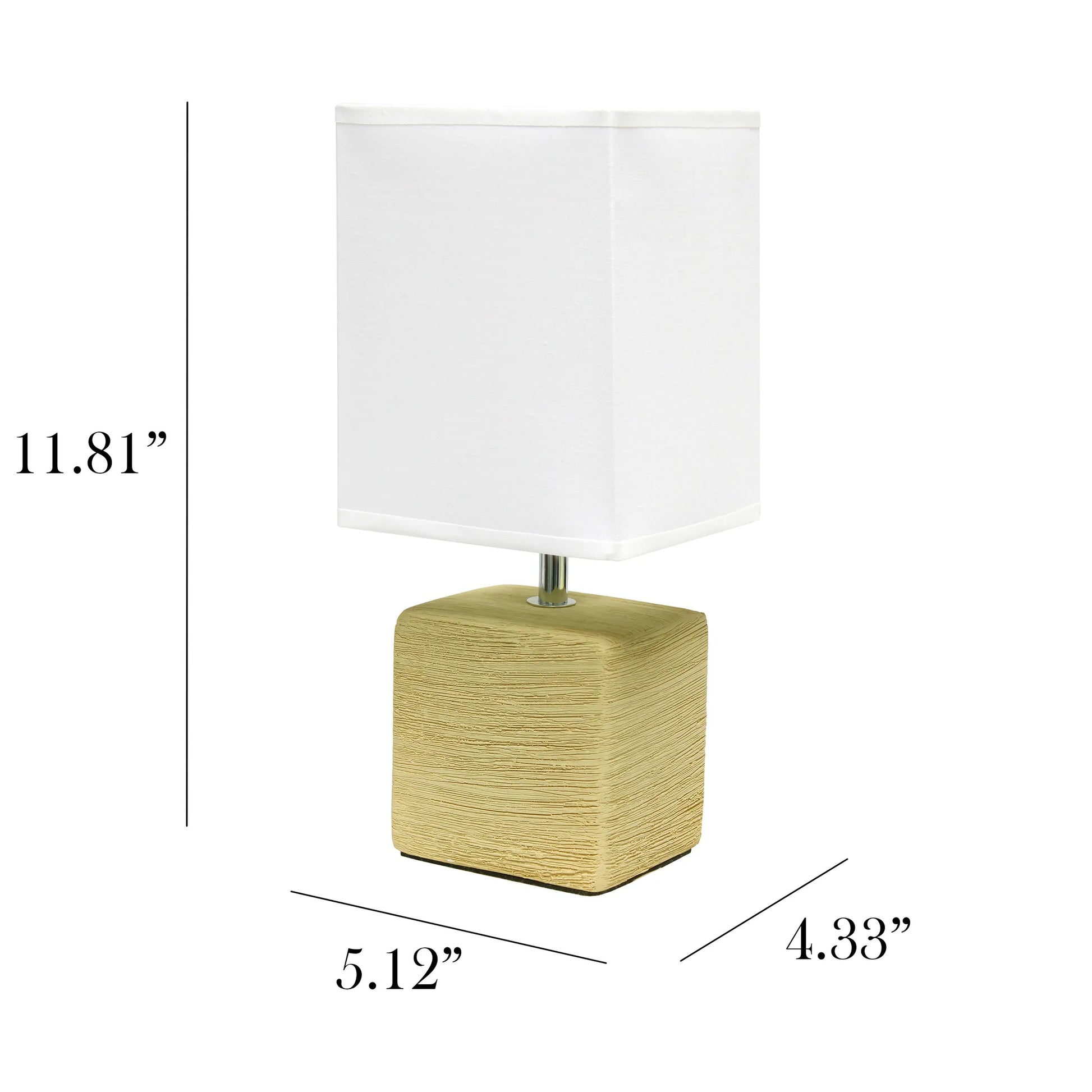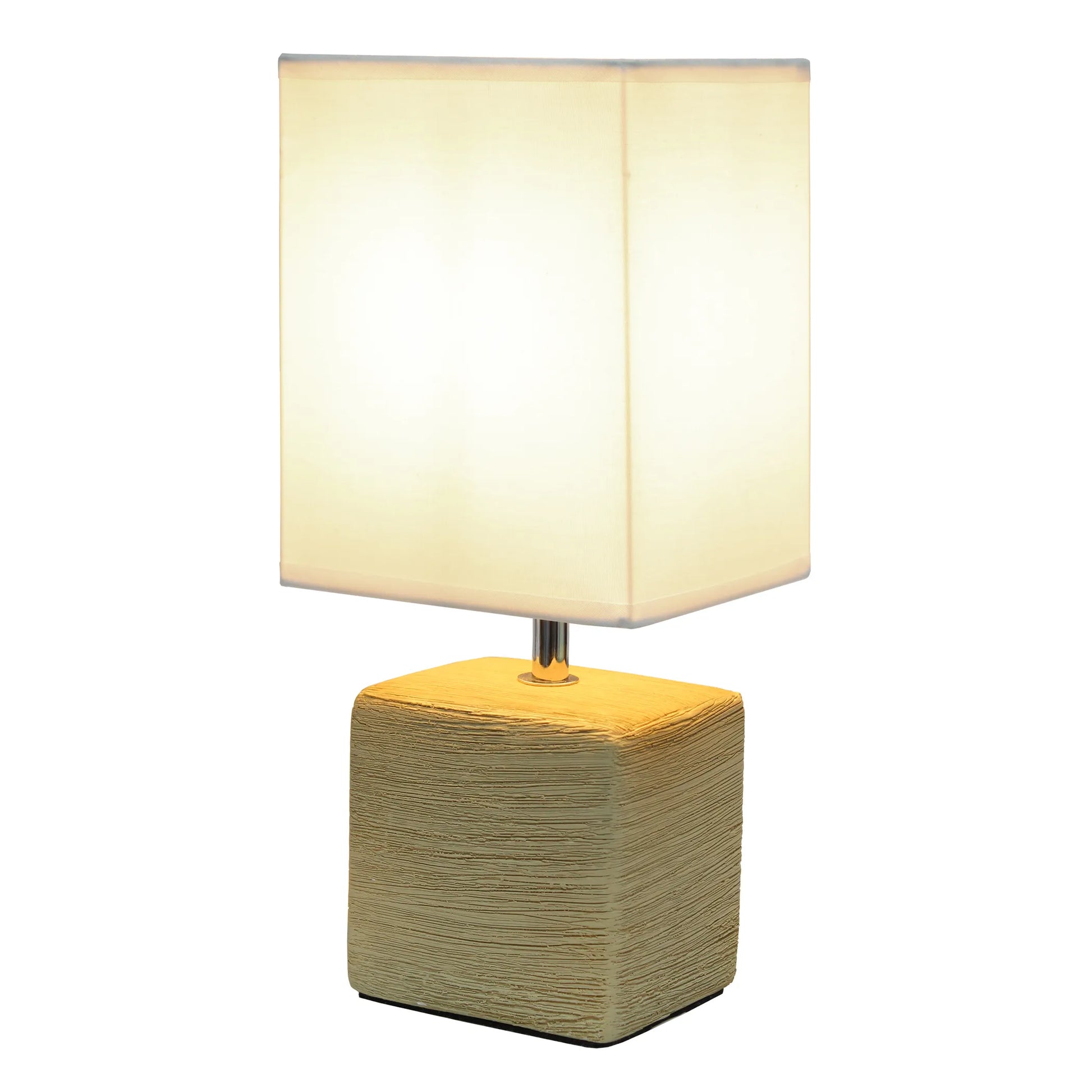 Clean and modern, this simple table lamp features a square faux stone base crafted from ceramic.  The crisp, soft fabric shade adds a gentle touch to the textured base.   Perfect for bedrooms, entryways,  kids and teens, college dorms, nurseries, or offices!