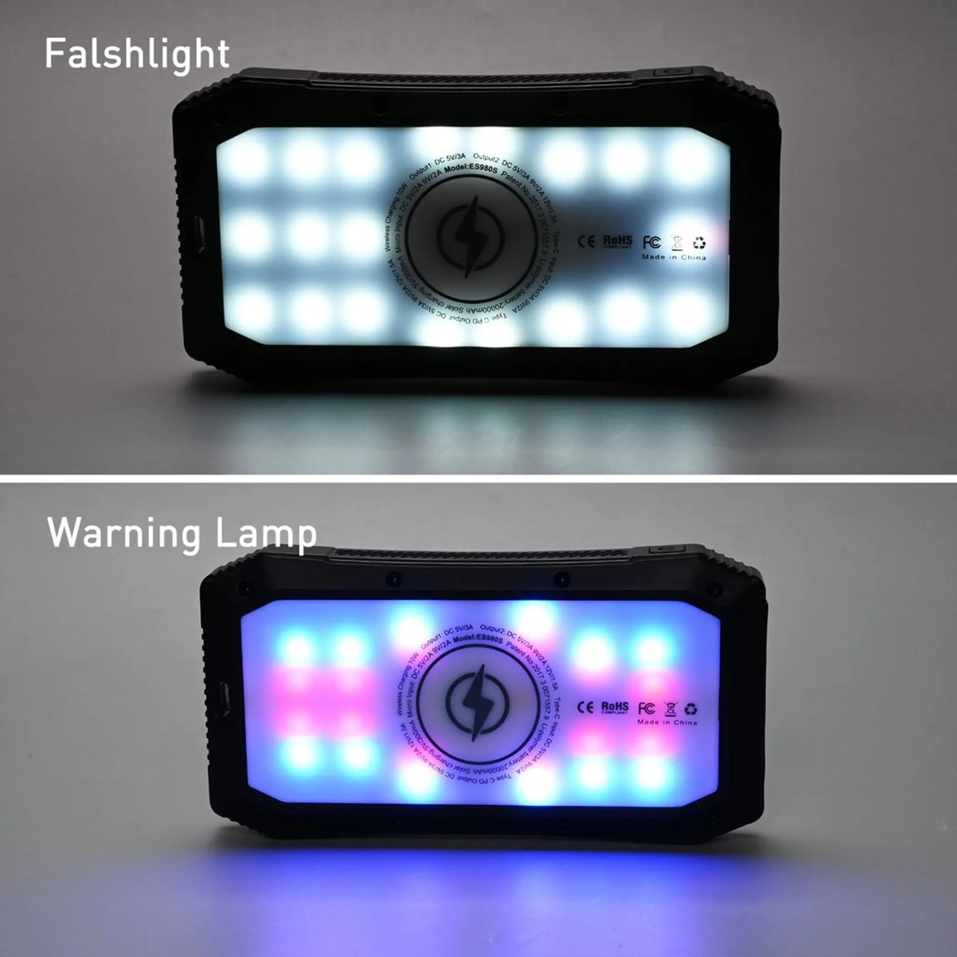 Sun Chaser Solar Powered Wireless Phone Charger With LED Flood Light. This is a 10,000 mAh capacity Solar Powerbank with a built-in wireless charger and LED floodlight.  This charger with boosting charging capability can simultaneously charge 2 to 4 devices with its built-in Qi-standard wireless charger, multi-port USB ports.  Charge any mobile phone 150% fully and charge any Tablet 100%. Also charge many devices like Cameras, Watches, and Toys  100%. The huge power capacity takes care of it all.  The Solar panel charges your power bank and regenerates all the power again. This water-resistant power bank is perfect for indoors or outdoors and great for quickly lighting up an area 8 ft x 8ft with its LED floodlights. The built-in power regulator will not overcharge your devices.  The whole power bank is shockproof and dustproof as well as water-resistant. With this is one solar charger you feel you really have power. The advanced light-absorbing solar panels take every light source and use it to convert to stored power. A true Sun Chaser- Mini, it works most efficiently in the daytime in sunlight and stores power that can be used any time anywhere outdoors or indoors. Details:Solar Powerbank 5.5 inch.  10,000 mAh stored power capacity. Qi Standard wireless charger 10W.  3 USB ports.  LED Flood Light.  Shock and Water Resistant hard case.