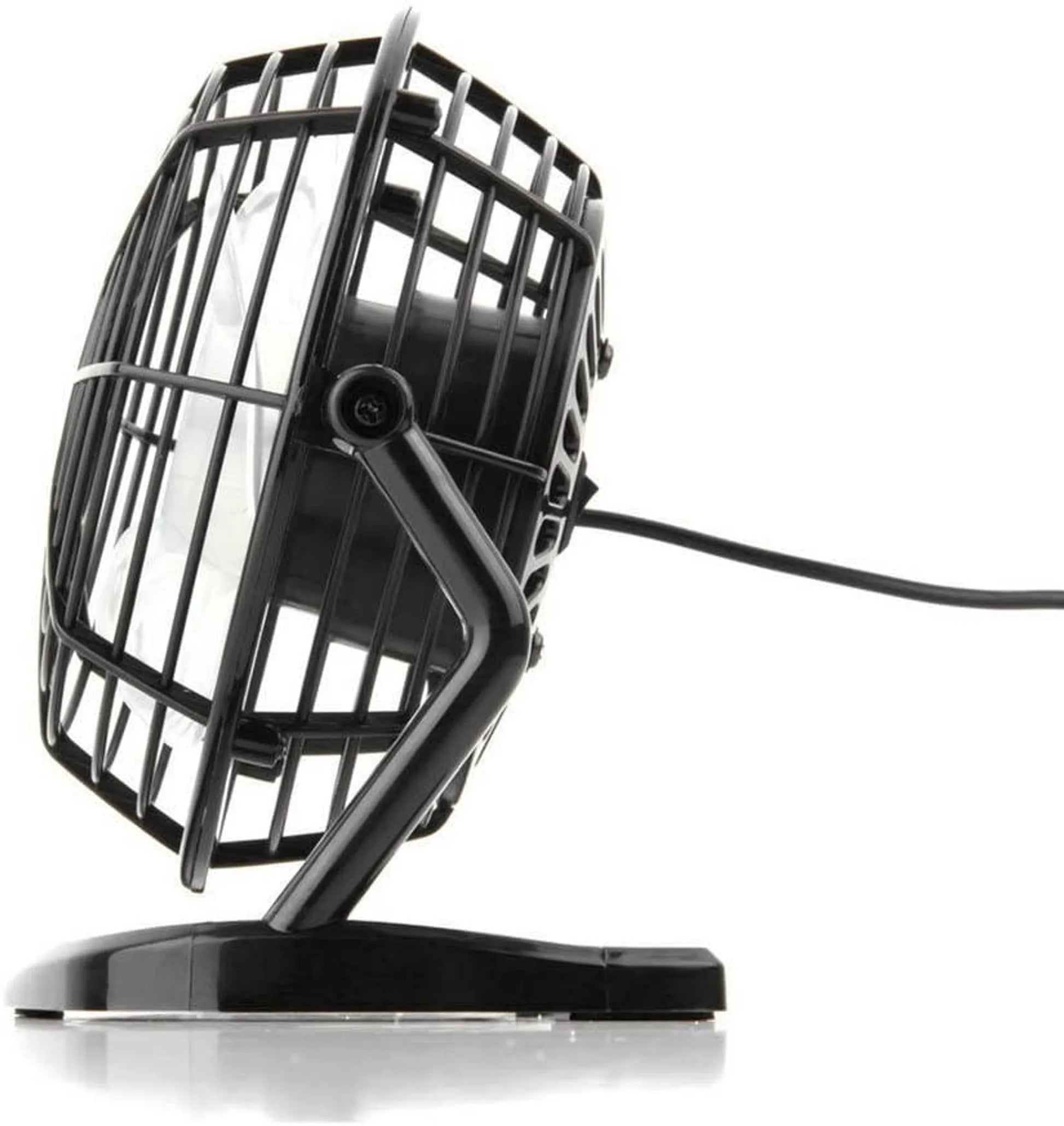 Cool off while working at your computer with this 2.5 Watt USB operated mini fan. Also great for laptop and PC cooling. Fan has free angle adjustment making sure you stay cool while working hard! Fan is made entirely of plastic keeping fingers safe while adjusting angles. Bottom has non-slip pads to make sure fan stays in place. Fan is totally USB operated and has a simple on/off switch located in back. Measures approximately 5 1/4" wide, 6" tall, 4" deep and has a 42 1/2" long USB cord. Comes packaged in an individual box. Box measures approximately 6.25" x 4.25" x 6.25". ,USB Personal Desk Fan,Ventilador